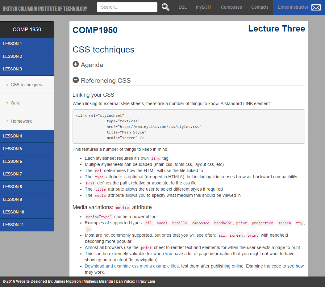 The goal of this project was to design an updated version of the existing COMP1950 website using the BCIT theme.